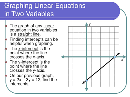 Let (x1, y1) be the known point on the line and let. From these statements we can conclude, if an ordered pair is a solution to a linear equations in two variables, then it lies on the graph of the equation. Substitute the expression for this variable into the second equation, then solve for the remaining variable. The graph of a linear equation in two variables is a straight line. Find the slope of a line. Linear systems with two variables. Let's say we've looked at our graph, and have picked the points (3, 2) and (5, 6). 16 −5 x5 = − ⇒ 5 In technical terms, the slope of the line is the change in y over the change in x. Linear equations and lines a linear equation in two variables is an equation that's equivalent to an equation of the form ax+ by+ c= 0 where a, b, and care constant numbers, and where aand bdon't both equal 0. Substitute that solution into either of the original equations to find the value of the first variable. The slope and the intercept define the linear relationship between two variables, and can be used to estimate an average rate of change. If you are given two points on a line, (x1,y1) (x 1, y 1), (x2,y2) (x 2, y 2) you can calculate the line's slope by using the formula: